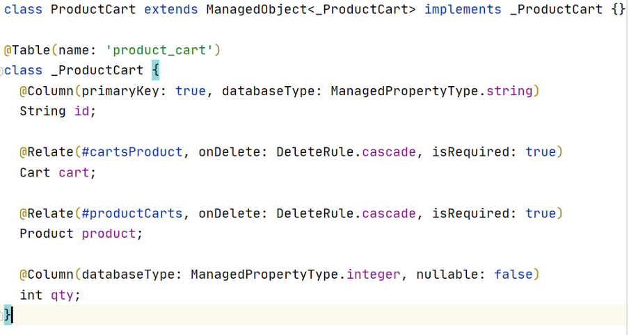 There are one-to-many relationships in the Aqueduct Framework (figured on Product and Category class) that are translated by inverse property. In this example, a product must always have a category (@Relate)—vice versa. One Category can have multiple product sets or none at all (ManagedSet). Inversion relation names between two classes must match each other, or an Error warning will appear when the project is compiled.