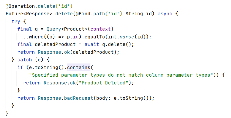 return Response.notFound(body:e.toString());