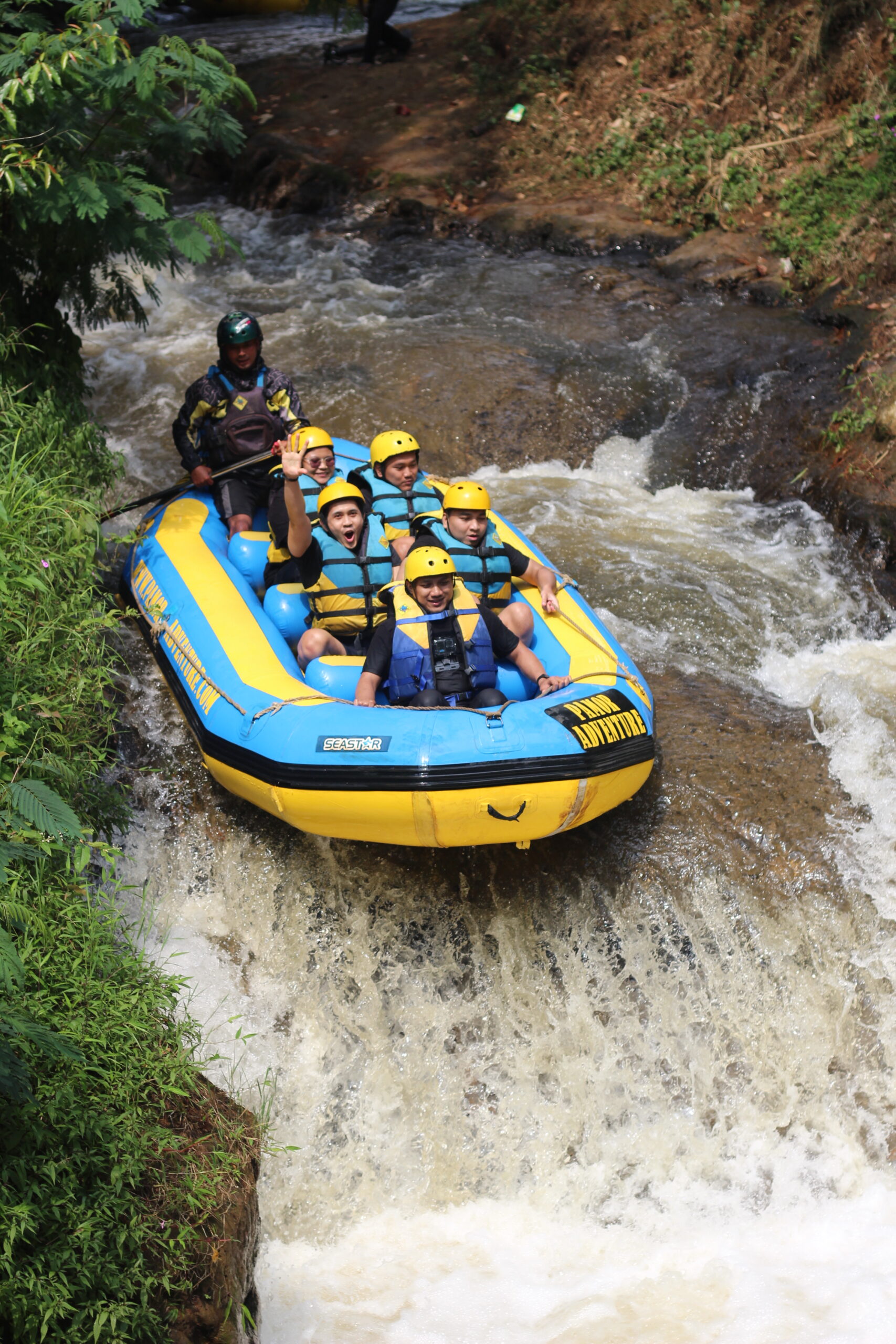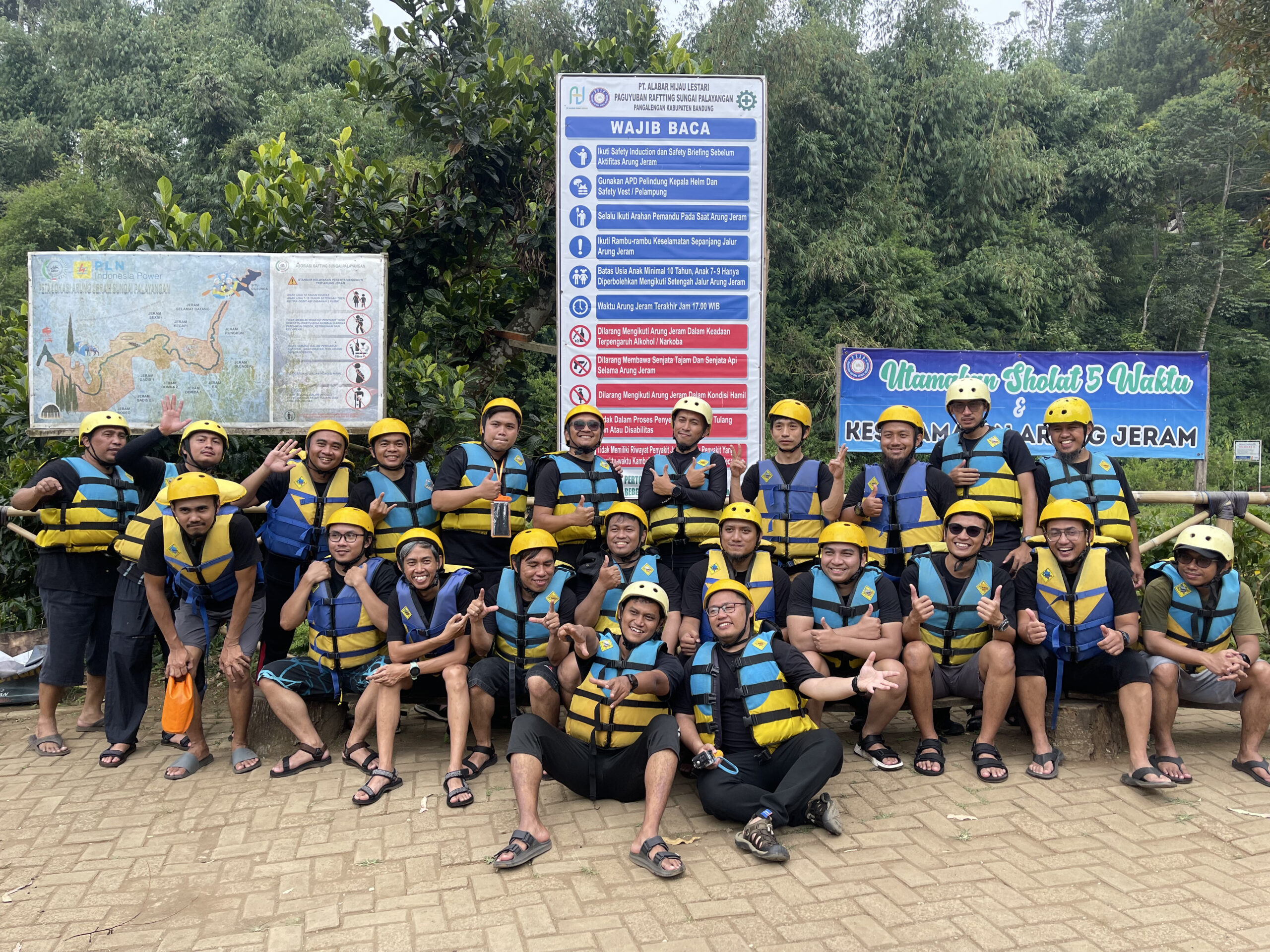 The fresh air of Situ Cileunca Lake with its glassy water greeted the team upon arrival in Palayangan. After a warm-up with fun outdoor games, the adventure began: rafting down the rapids of the Palayangan River. Teams of four boarded their rafts, each accompanied by a guide. As the rumble of water hit the moss-covered rocks, the rafts dipped and bumped against the current. Every time they surged, and the water splashed high, the teams broke into joyful shouts.