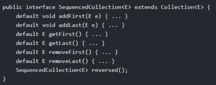 Therefore, Sequenced Collection has been introduced to make a new standard for getting the first or last data for all classes derived from Collection class.