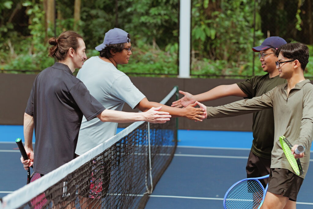 Imagine reconnecting with colleagues as you approach the net, the pop of the ball blending with the subtle cling of rackets brushing and tapping between points, an experience both energising and refreshing.
